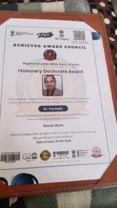 कालाआम औद्योगिक क्षेत्र के चर्चित आयुर्वेदिक वैध जनसेवा मूर्ति श्री हरकेश पुत्र फूल चंद को मिला दिल्ली अचीवर काउन्सिल डॉक्टरेट उपाधि सम्मान- –